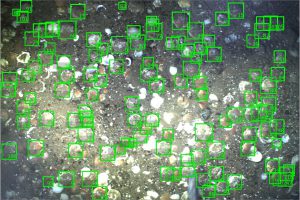 Scientists at the School of Marine Science and Technology (SMAST) work with industry partners to conduct independent surveys of scallop beds, primarily in closed areas of Georges Bank and the Mid-Atlantic. Scallops in images of the sea floor must be counted and measured. This work is time intensive and tedious for human reviewers alone.